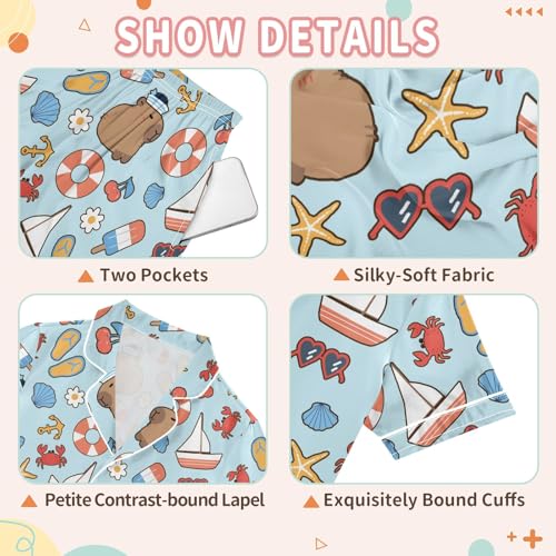 Cartoon Sailor Capybara Summer Satin Pajama Set, Cute Button-Down Sleepwear Pj Set for Sleep Wears 4