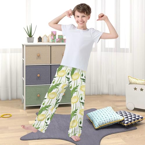 J JOYSAY Poppy Flower Foliage Ivory Pajamas Pants Soft Long Pajama Bottoms Lounge Sleep Pants Size S-XL 7