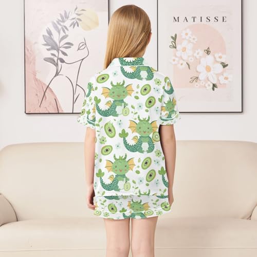 senya Cute Kiwi Dinosaurs Satin Summer Pajama Sets Silk Short Sleeve Button Down Sleepwear 2