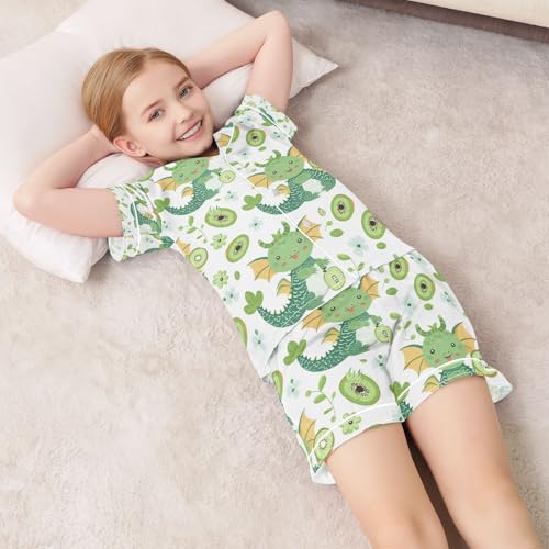 senya Cute Kiwi Dinosaurs Satin Summer Pajama Sets Silk Short Sleeve Button Down Sleepwear 6