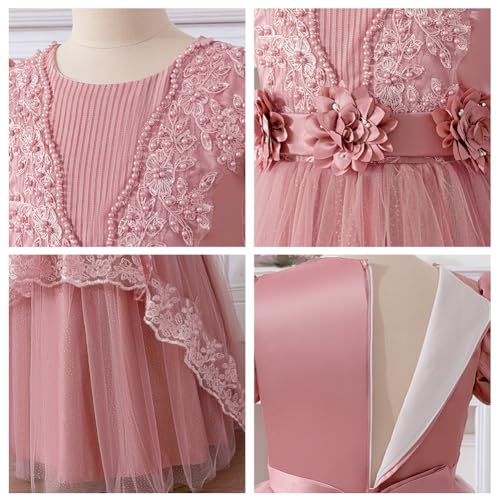 • ♣ Girls vintage floral embroidery lace little princess wedding birthday dress is made of superior quality fabric, Polyester, Lace, Tulle, skin friendly, comfortable lining and elaborate stitching, not easily deform faded.