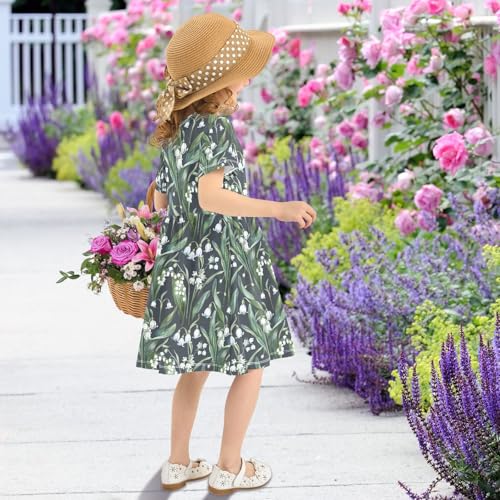 Summer Girl Dresses Blue Lily of The Valley Flowers Toddler Short Sleeve A-line Dress Casual Sundress 6