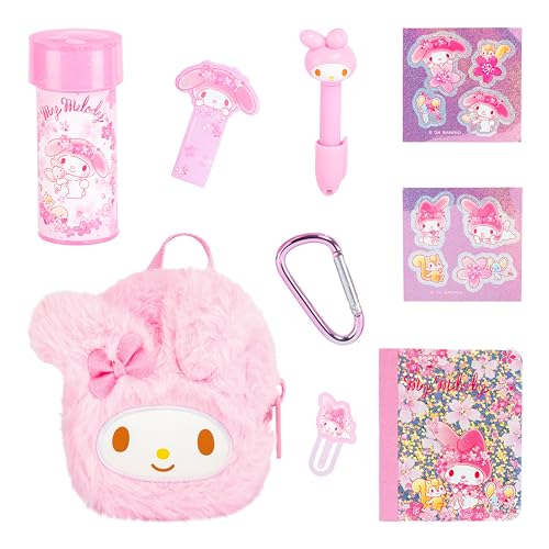 • Find 6 Sanrio Themed Surprises Inside Your Bags! Unzip and open the Backpack to reveal 6 of the cutest Sanrio themed stationery surprises inside! They all really work! Discover tiny Pencil Cases, Pencils, Paper Clips, Postcard Sets, Erasers, Stickers, Notebooks and more! Each surprise matches the Sanrio character on the Bag - Hello Kitty, Keroppi, My Melody!