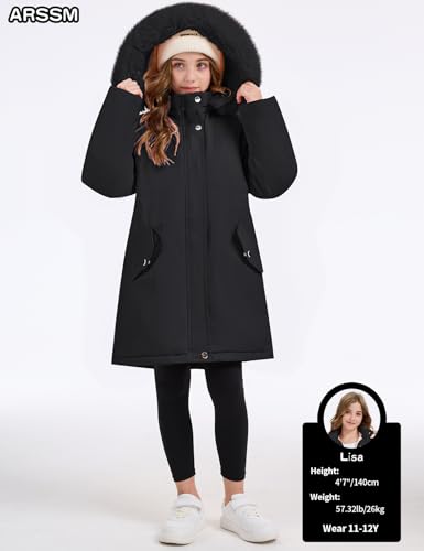 Arssm Girl's Winter Coat Long Waterproof Kids Outerwear Warm Parka Puffer Jacket with Hood 5