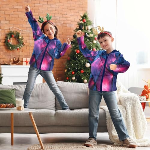 Blue Geometric Triangles Toddler Fleece Jacket Girl Boys Hooded Fleece Jacket Coat Warm Outwear Zip-up 3-10T 3