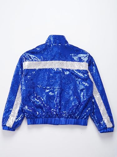 Girls Kids Hip Hop Dance Sequins Jacket Sparkly Zip Up Coat Stand Collar Long Sleeve Outerwear 4