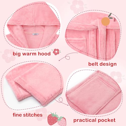 V.&GRIN Girls Fleece Hooded Robe, Kids Soft Plush Warm Printed Bathrobe Sleepwear Gifts for 5-14 Years 2