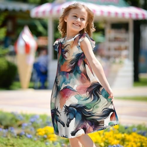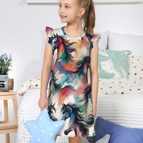 Augenstern Flutter Sleeve Nightgown Watercolor-Colorful-Horse Soft Sleepwear Nightdress 5