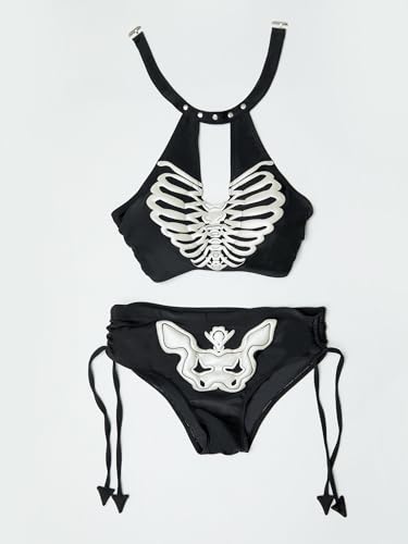MEOWCOS Goth Bikini Swimsuit Gothic Unique Black Skull Print Bathing Suit Dark Style Goth Swimsuit 5