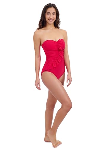 HOT ! Profile by Gottex Tutti Frutti Women’s Bandeau Ruffle Surplice One Piece Stylish Bathing Suit with Tummy Control & Soft Cups