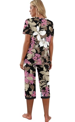 PrinStory Women's Pajama Set Short Sleeve Shirt and Capri Pants Sleepwear Pjs Sets with Pockets 1