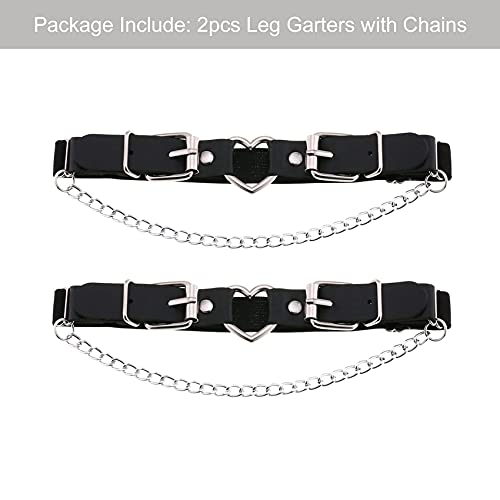 2PCs Leather Leg Garter with Chains, Elastic Rock Heart Thigh Garter for Women 2