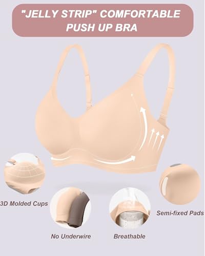 • COMFORTABLE BRAS FOR WOMEN: Our womens jelly wireless push up bras are made from upgraded materials. They are silky soft, smooth, breathable, and moisture-wicking—light as a cloud, with a second-skin feel. These truly invisible seamless bras disappear under clothes. You can wear them as sleep bras, yoga bras, everyday t-shirt bras, shapely bras, lounge bra, or low-impact sports bras