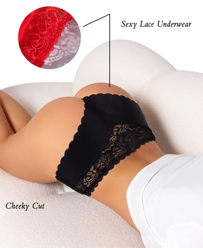 Sexy Underwear for Women Lace Cheeky Panties Breathable Bikini for Ladies 6 Pack 3