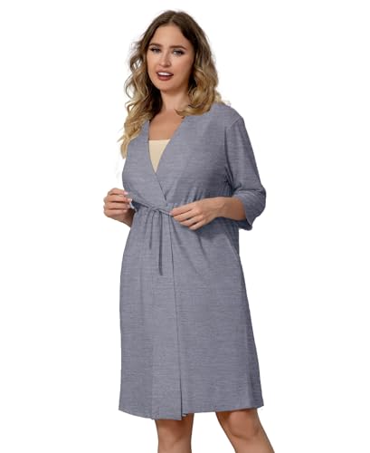 Post Surgery Mastectomy Robe Women with 4 Internal Drain Pockets 3/4 Sleeves Night Gowns Pajama Dress Shirts 3