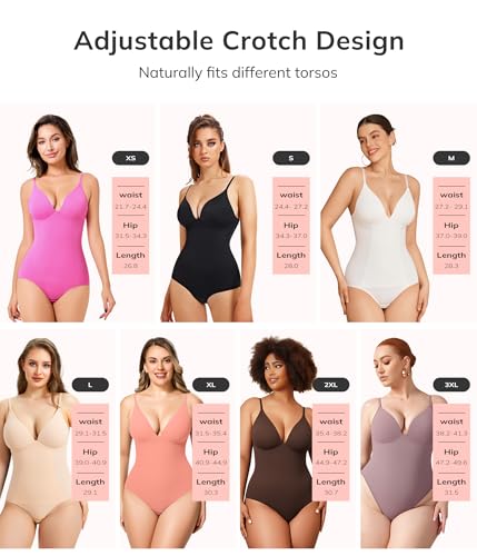 • Size-XS=(Waist 21.6"-24.4",30A/30B/30C/32A),S=(Waist 24.4"-27.1",32B/32C/34A/34B),M=(Waist 27.1"-29.9",32D/34C/36A/36B),L=(Waist 29.9"-32.6",34D/36C/38B/38C),XL=(Waist 32.6"-35.4",36D/38D/40B/40C),2XL=(Waist 35.4"-38.1",40D/42B/42C),3XL=(Waist 38.1"-41.3",42D/40DD/42DD).Shapewear Bodysuits for women see details and suggested size in size chart.