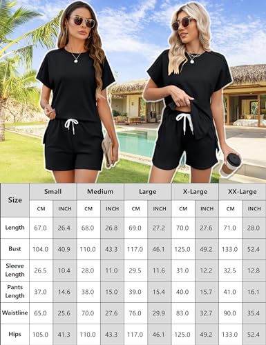 LOMON Womens Fashion 2 Piece Outfits Sweatsuits 2025 Summer Short Sleeve Loungewear Tracksuit Round Neck Lounge Shorts Sets 2