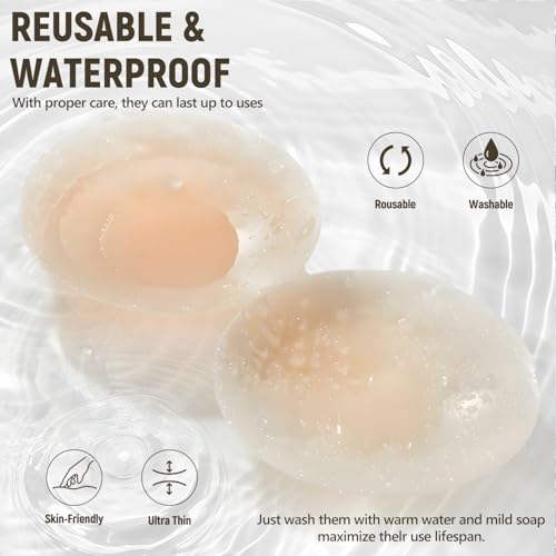 • REUSABLE WATERPROOF SILICONE NIPPLE COVERS: These silicone patties can be reused multiple times. After each use, simply wash them in mild soapy water and let them air dry naturally. Their self-adhesive properties will then be restored.