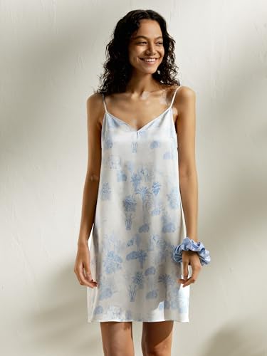 LilySilk 100% Silk Nightgown Mulberry Printed Silk Cami Night Dress with Spaghetti Straps & V Neck Relaxed Sexy 6