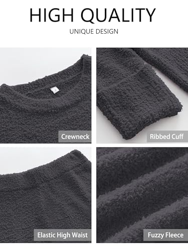• Feature - Two piece lounge sets for women feature with fuzzy fleece fabric, long sleeve, crew neck, high waist wide-leg pants, ribbed cuff, and pullover sweater top. Pajamas for women set is suitable for daily wear, home, pajama party, travel, vacation.