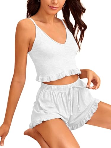 Avanova Women Sexy 2 Piece Pajama Set Ruffle Trim Cami Top and Shorts Sleepwear Set 5