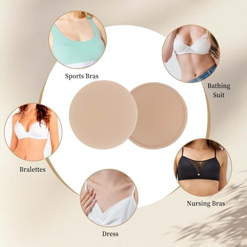 Round Bra Inserts Pads,Removable and Washable Bra Cups Inserts Push Up Breast Inserts Sew in Bra Cups for Women for Bikinis Top Swimsuit Sport Bra(2 Pairs) 4