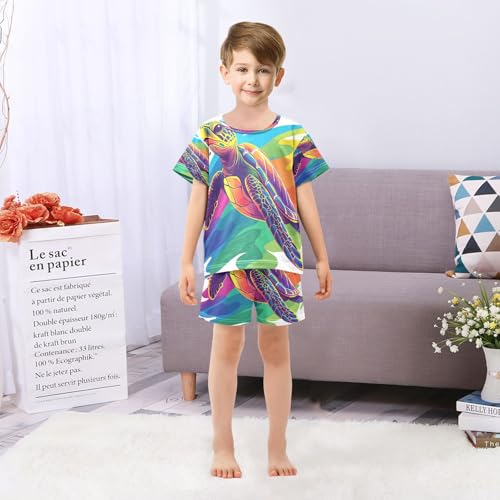 HOT ! ALAZA Rainbow Sea Turtle Splash Pajamas Set Short Sleeve Cotton Sleepwear Summer Pjs 2 Piece 5-14Y