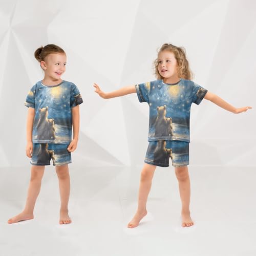 ALAZA Van Gogh Funny Bear Sky Galaxy Pajamas Set Short Sleeve Cotton Sleepwear Summer Pjs 2 Piece 5-14Y 2