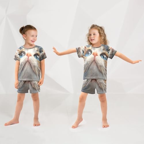 ALAZA Cat Kitten Animal Lovely Pajamas Set Short Sleeve Cotton Sleepwear Summer Pjs 2 Piece 5-14Y 3