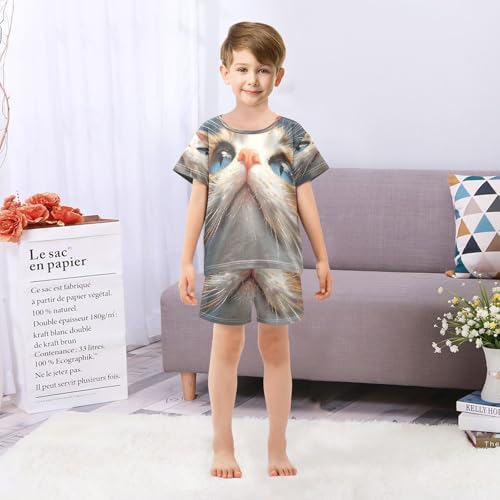 ALAZA Cat Kitten Animal Lovely Pajamas Set Short Sleeve Cotton Sleepwear Summer Pjs 2 Piece 5-14Y 6