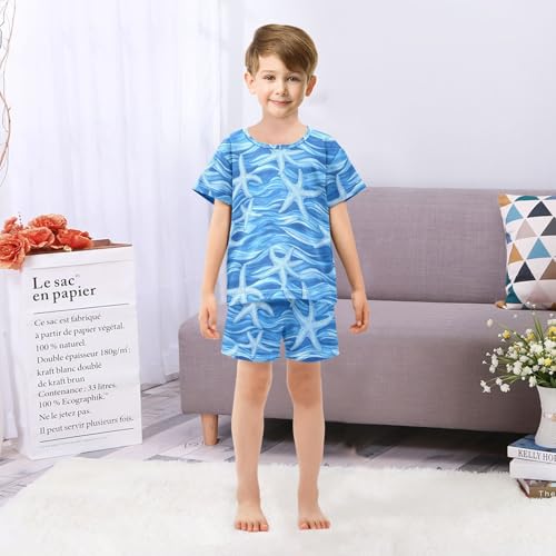 ALAZA Blue Starfish Cartoon Pajamas Set Short Sleeve Cotton Sleepwear Summer Pjs 2 Piece 5-14Y 6