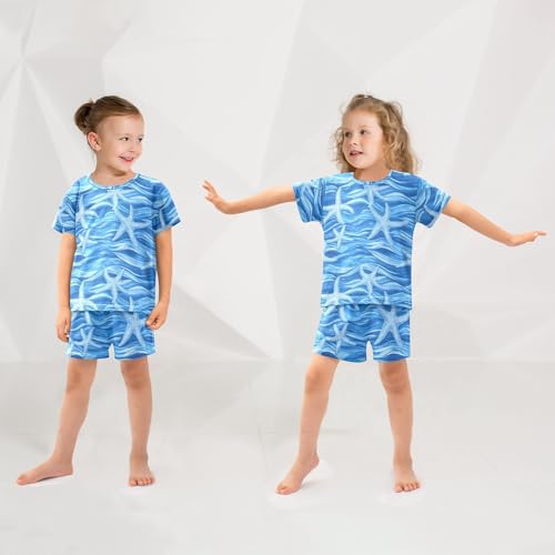 ALAZA Blue Starfish Cartoon Pajamas Set Short Sleeve Cotton Sleepwear Summer Pjs 2 Piece 5-14Y 2