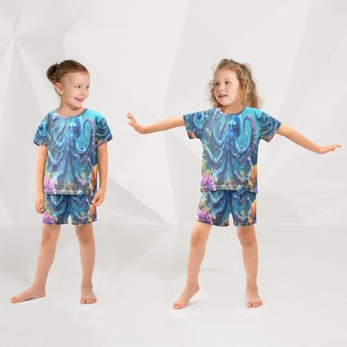 ALAZA Blue Octopus Shark Coral Reef Pajamas Set Short Sleeve Cotton Sleepwear Summer Pjs 2 Piece 5-14Y 5