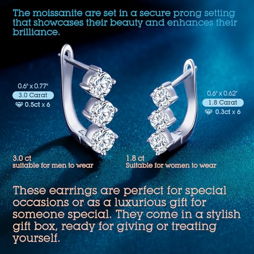 More information about Earrings for Woman Man, Anniversary Birthday Gifts for Wife and Husband, 1.8 carat-3.0 carat Hoop Earrings, Woman's & Unisex Moissanite Earrings, Birthday Christmas Valentines Gift