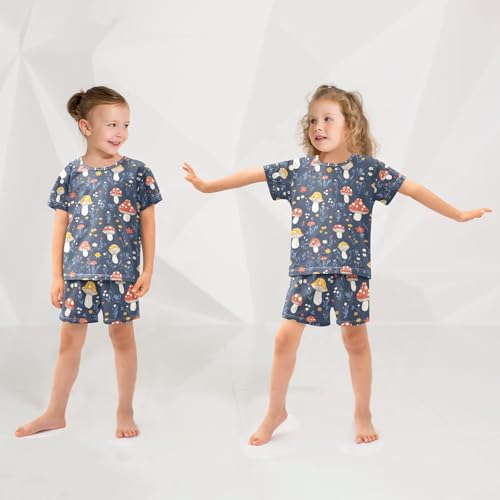 ALAZA Mushroom Flower Navy Blue Pajamas Set Short Sleeve Cotton Sleepwear Summer Pjs 2 Piece 5-14Y 2