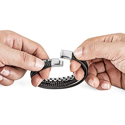 • High-quality Mens Bracelets: This mens bracelet is made with high quality genuine leather and stainless steel, which ensure the durability and rust resistance. Besides, the strong magnetic clasp design make it convenient to secure the bracelet on your wrist and adjust the bracelet size.