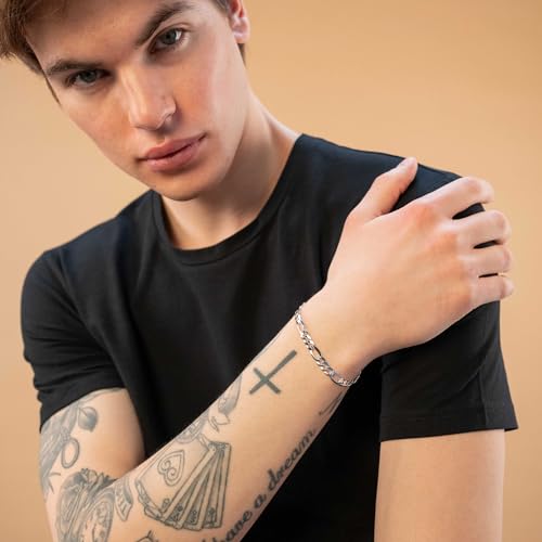 QUADRI Figaro Link Chain Bracelet, 7mm, 925 Sterling Silver, Italian Bracelet for Men and Women, 7-9 Inch, Premium Quality, Made in Italy, Gift Box Included 4