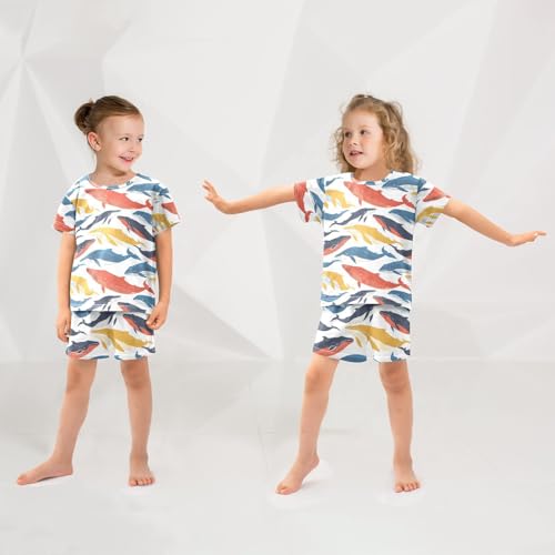 ALAZA Orange Yellow Blue Whale Pajamas Short Sleeve 2 Piece Sleepwear Top and Bottom Pajama Set Unisex 6