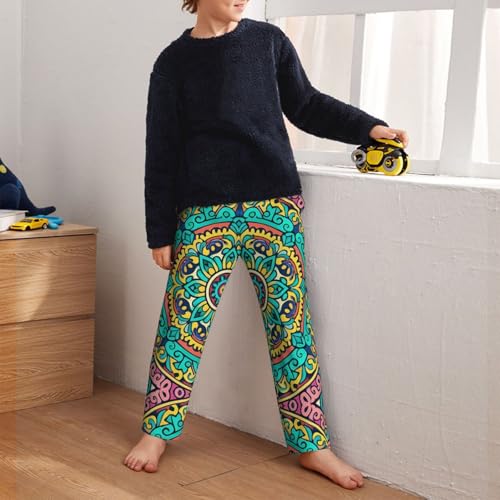Pajama Pants Pajama Bottoms with Elastic Waistband Sleepwear Lounge Pants, Floral Colorful Mandala Flowers 3