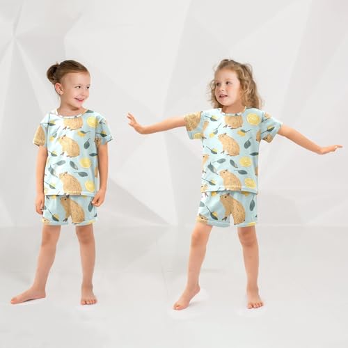 ALAZA Cute Capybara Lemon Fruit Pajamas Short Sleeve 2 Piece Sleepwear Top and Bottom Pajama Set Unisex 6
