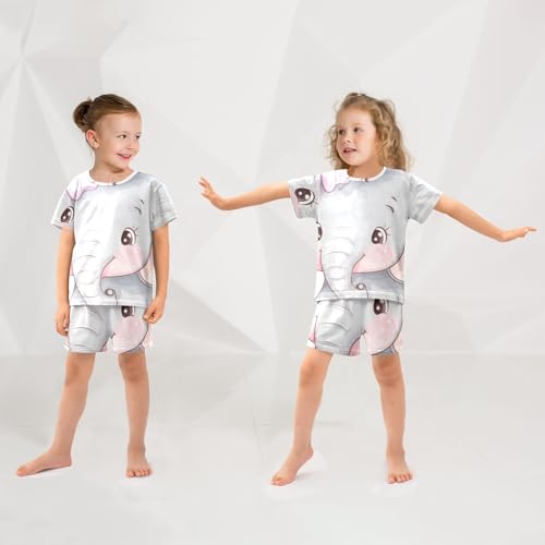 Summer Pajama Set Elephant Purple Flower, Short Sleeve Sleepwear Nightwear 2