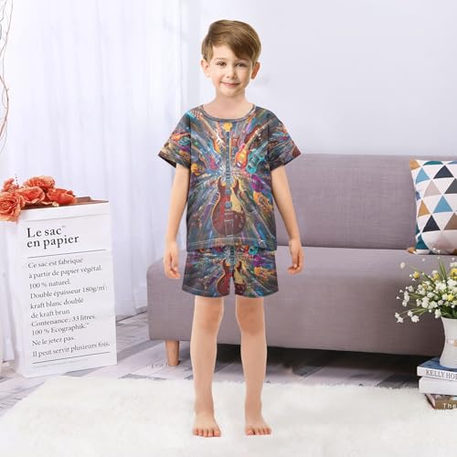 ALAZA Electric Guitar Fantasy Music Pajamas Set Short Sleeve Cotton Sleepwear Summer Pjs 2 Piece 5-14Y 5