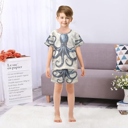 ALAZA Vintage Style Octopus Antique Nautical Map Pajamas Set Short Sleeve Cotton Sleepwear Summer Pjs 2 Piece 5-14Y 6