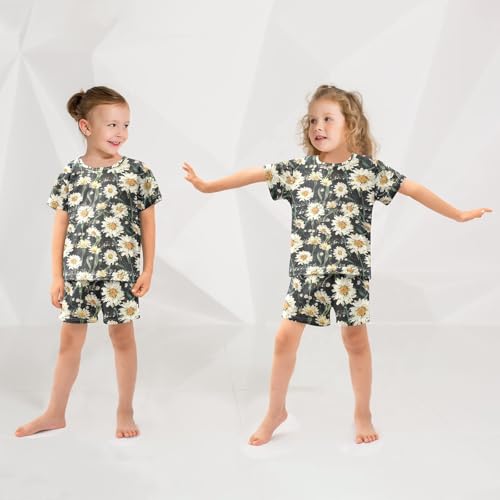 ALAZA Daisy Flowers Music Notes Black Pajama Set Short Sleeve Sleepwear Soft Lounge Nightwear 5