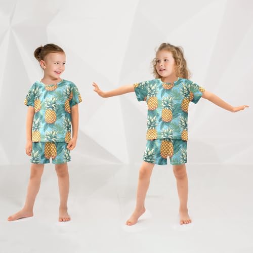 ALAZA Pineapples Green Leaves Pajama Set Short Sleeve Sleepwear Soft Lounge Nightwear 1