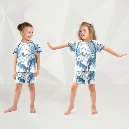 senya Short Sleeve Pajamas Sets Summer Cotton Sleepwear Blue White Flower Dreamcatcher Wolf 2
