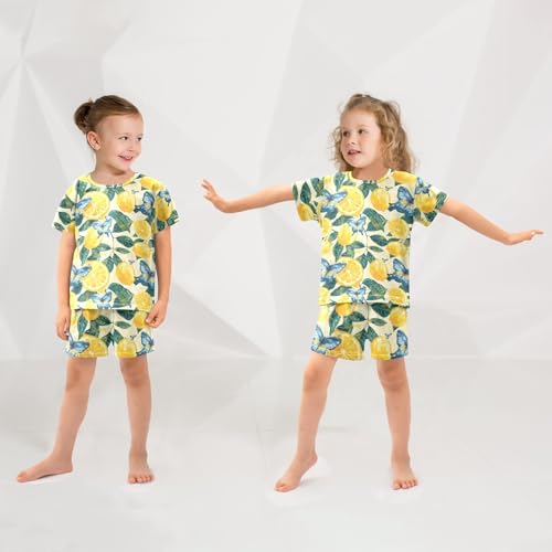 ALAZA Lemon Leaves Butterfly Pajama Set Short Sleeve Sleepwear Soft Lounge Nightwear 2