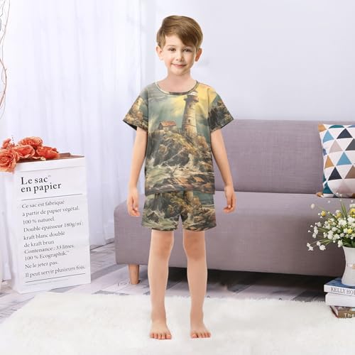 ALAZA Nautical Lighthouse and Ocean Waves Pajama Set Short Sleeve Sleepwear Soft Lounge Nightwear 1