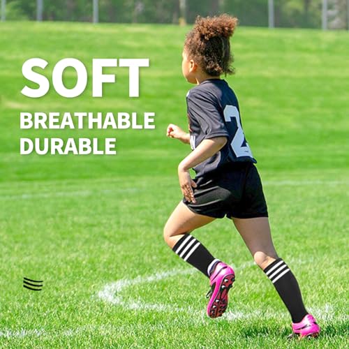 BISOUSOX Soccer Socks Kids Youth Girls Socks 6-8 Years Old Knee High Socks 10 12 Uniform Long Cotton Boys Athletic Stripe 3