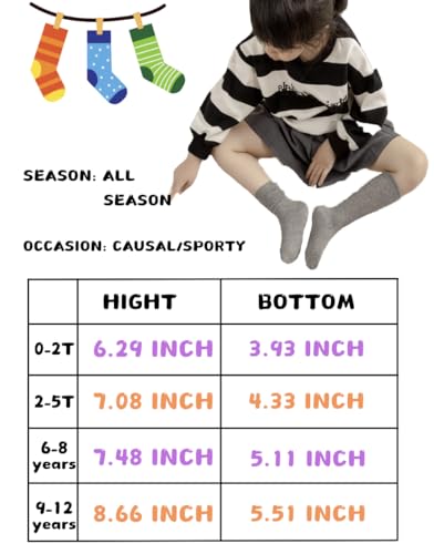 • Size: The slouch socks of toddler girls boys have four size fits most kids from 0-12 Years. Washing by Hand/Machine Gently.